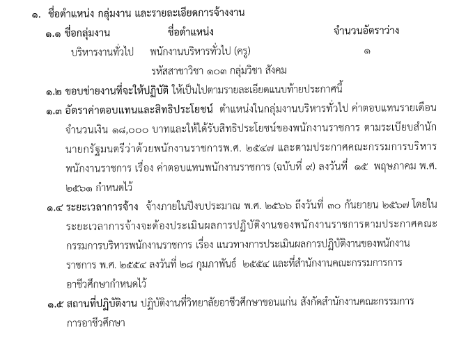 วิทยาลัยอาชีวศึกษาขอนแก่น รับสมัครพนักงานราชการทั่วไป ตำแหน่ง พนักงานบริหารทั่วไป (ครู)