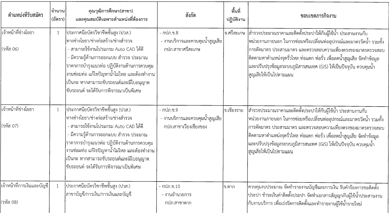 การประปาส่วนภูมิภาค รับสมัครลูกจ้างรายเดือน จำนวน หลายตำแหน่ง
